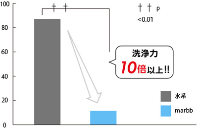 marbbの洗浄力は、残留皮脂量の計測で、10倍以上の成績をほこります。